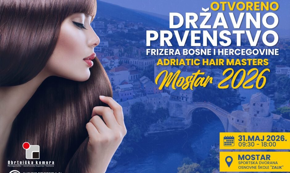 Otvoreno Državno prvenstvo frizera Bosne i Hercegovine održat će se u maju 2026. godine u Mostaru, u dvorani Osnovna škola Zalik.